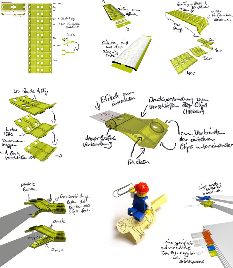 COGO is a little clip that can hold two or more pieces of paper together without damaging them, just like a paper clip. But unlike those they are fused to a Lego-like brick which allows for easy labelling and to tie several clips into a structure. They help to visualize a work process intuitively and facilitate order and recovery.