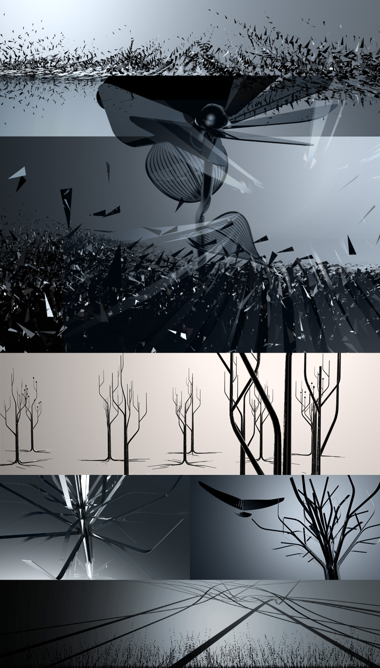 The world premier of the Audi A5 and S5 was the centre piece of the Audi trade fair stand at the Motor Show Geneva 2007. I had the chance to attend to the project during the whole process. This spanned from generating ideas for the concept of staging the presentation to designing the imaging and graphic language for the multi media presentation. The renderings above were conceived to be shown on seven wide screens. I developed storyboards and imagery for those 3D animated videos. Two metal worlds were the perfect frames for the new Audi models.